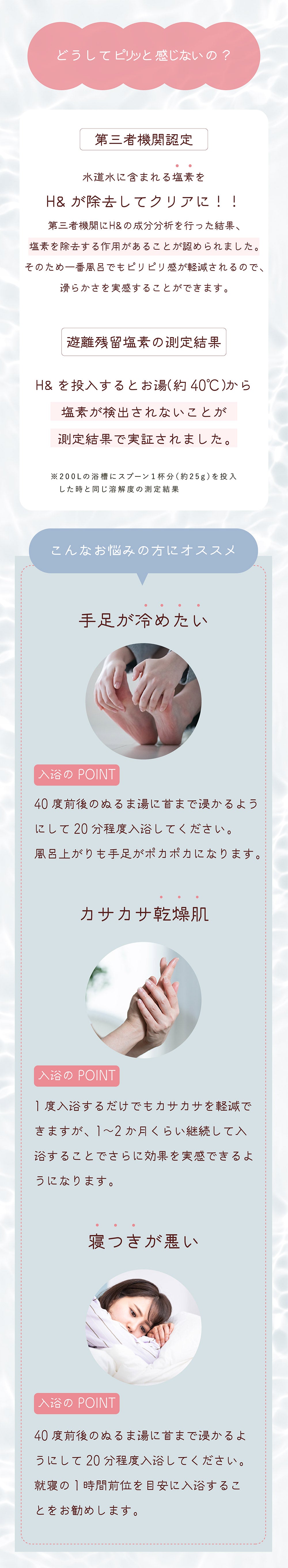 H&は、化粧品許可を取得しているので、「体を温める効果」、「弾力のある肌」、「ハリ艶のある髪」などの効果効能を期待することができます。