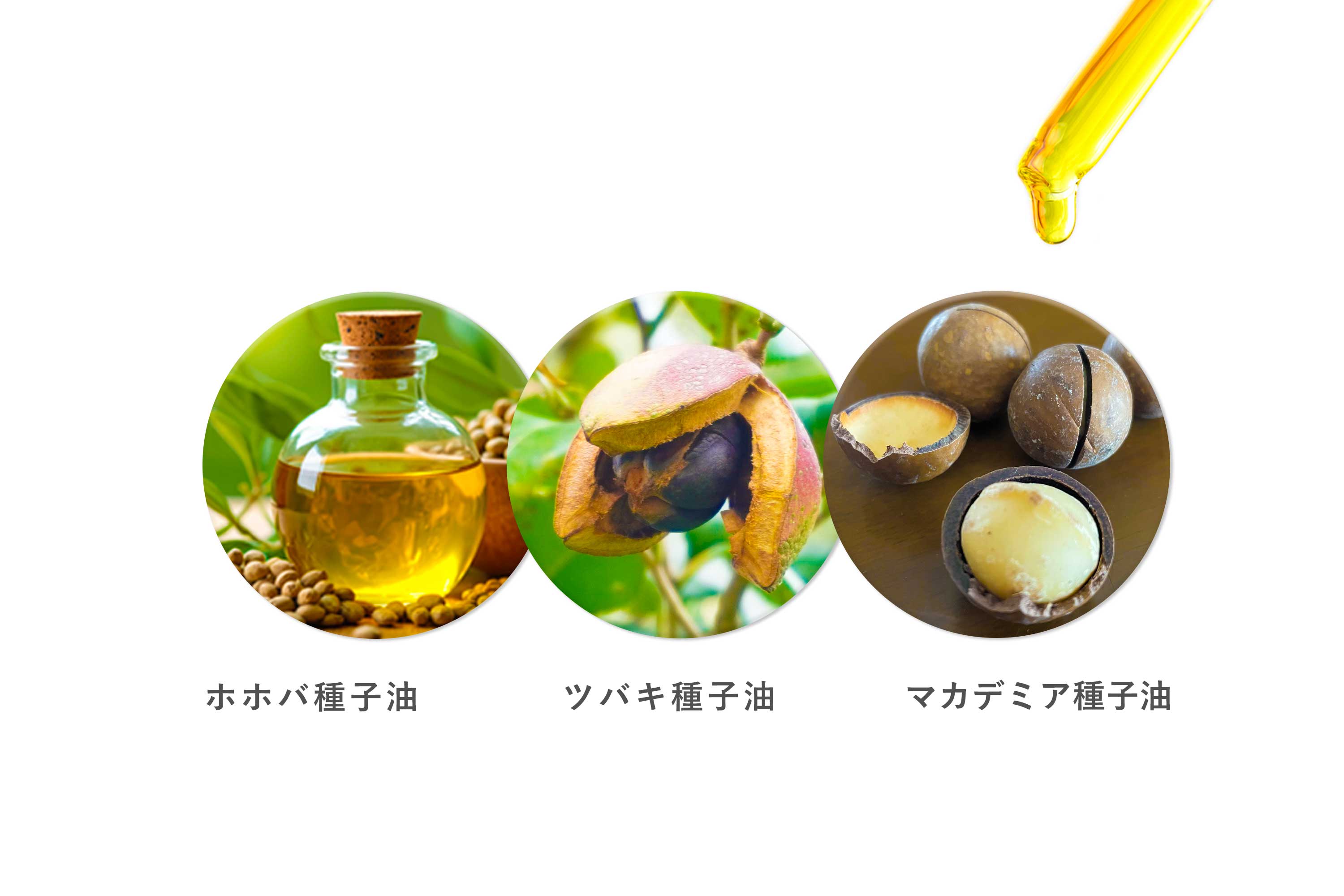 ホホバ種子油、ツバキ種子油、マカデミア種子油をバランスよくブレンド。